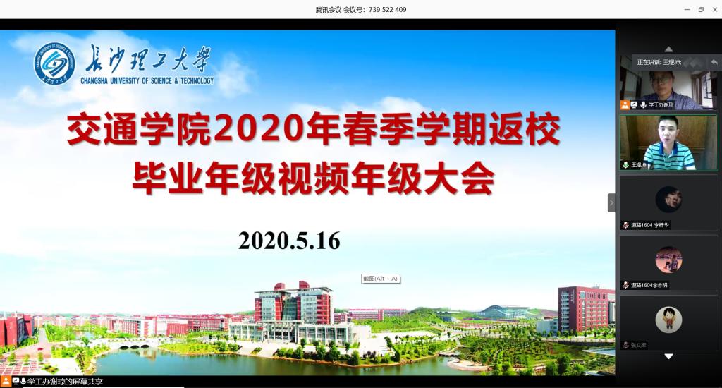为推动2020年春季学期毕业年级返校工作顺利进行,5月16日下午,交通学院召开2016级视频年级大会。院党委副书记王煜坤,各班班主任、年级辅导员、全体毕业年级学生参加,会议由2016级辅导员谢琼主持。