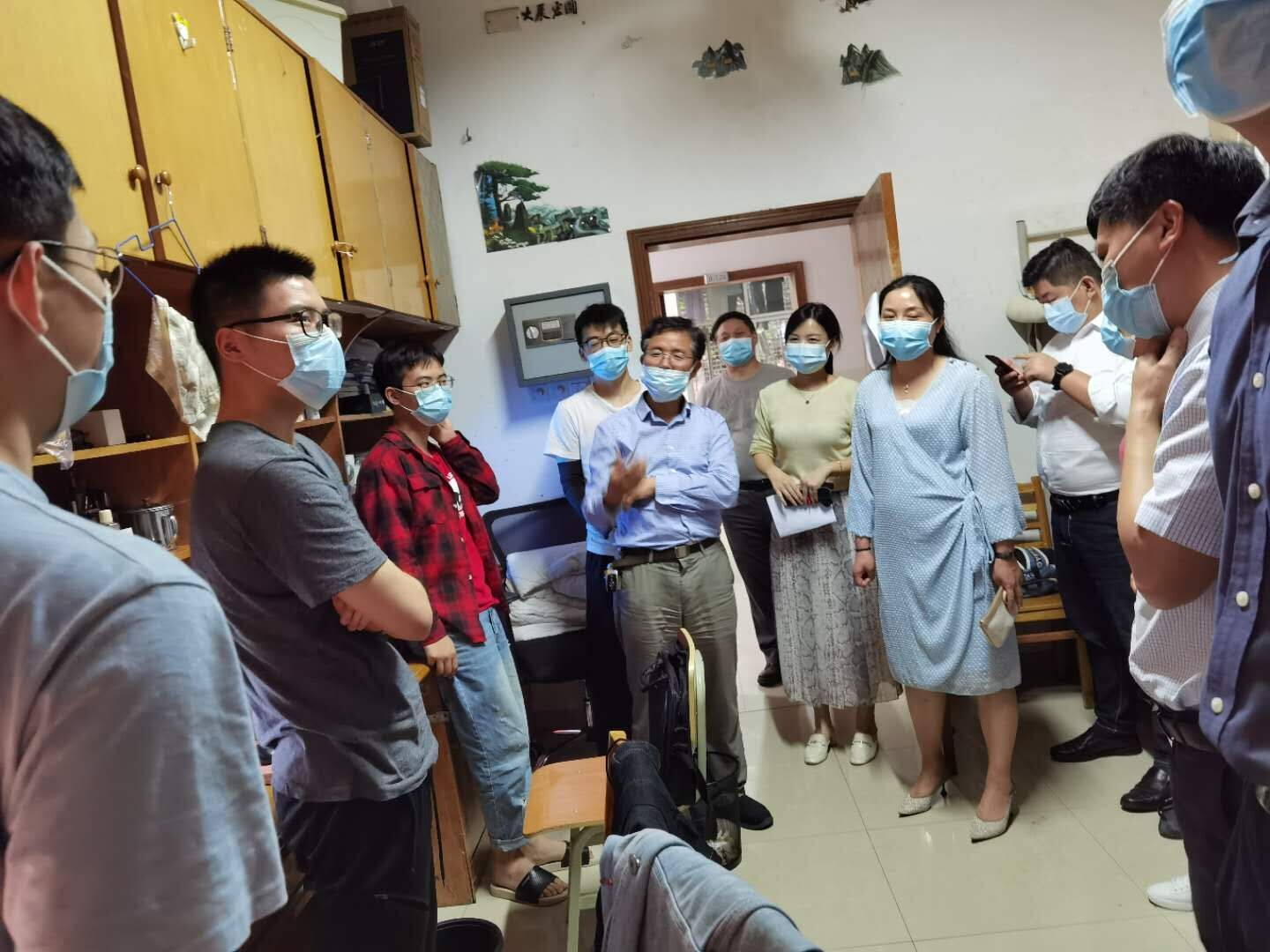 5月21日下午,学院全体院领导、毕业班辅导员和部分毕业班班主任深入宿舍走访看望返校毕业生,与返校的毕业班学生进行交谈,详细了解学生疫情防控期间在家里的学习生活、返校过程情况。尤其关心学生防护物资、毕业设计及就业、考研等方面准备情况,叮嘱毕业生们要强化疫情防控意识,做好个人防护,安心完成毕业前各项学习任务,以确保大家都能平安、顺利毕业。返校毕业班学生表示,“很高兴在毕业前还有机会返校‘回家’,看到楼栋外一条条‘走心’的横幅,宿舍里学工办老师精心准备的‘防疫爱心礼包’,深切感受到学院领导、老师对学生的关爱,幸福感满满”。