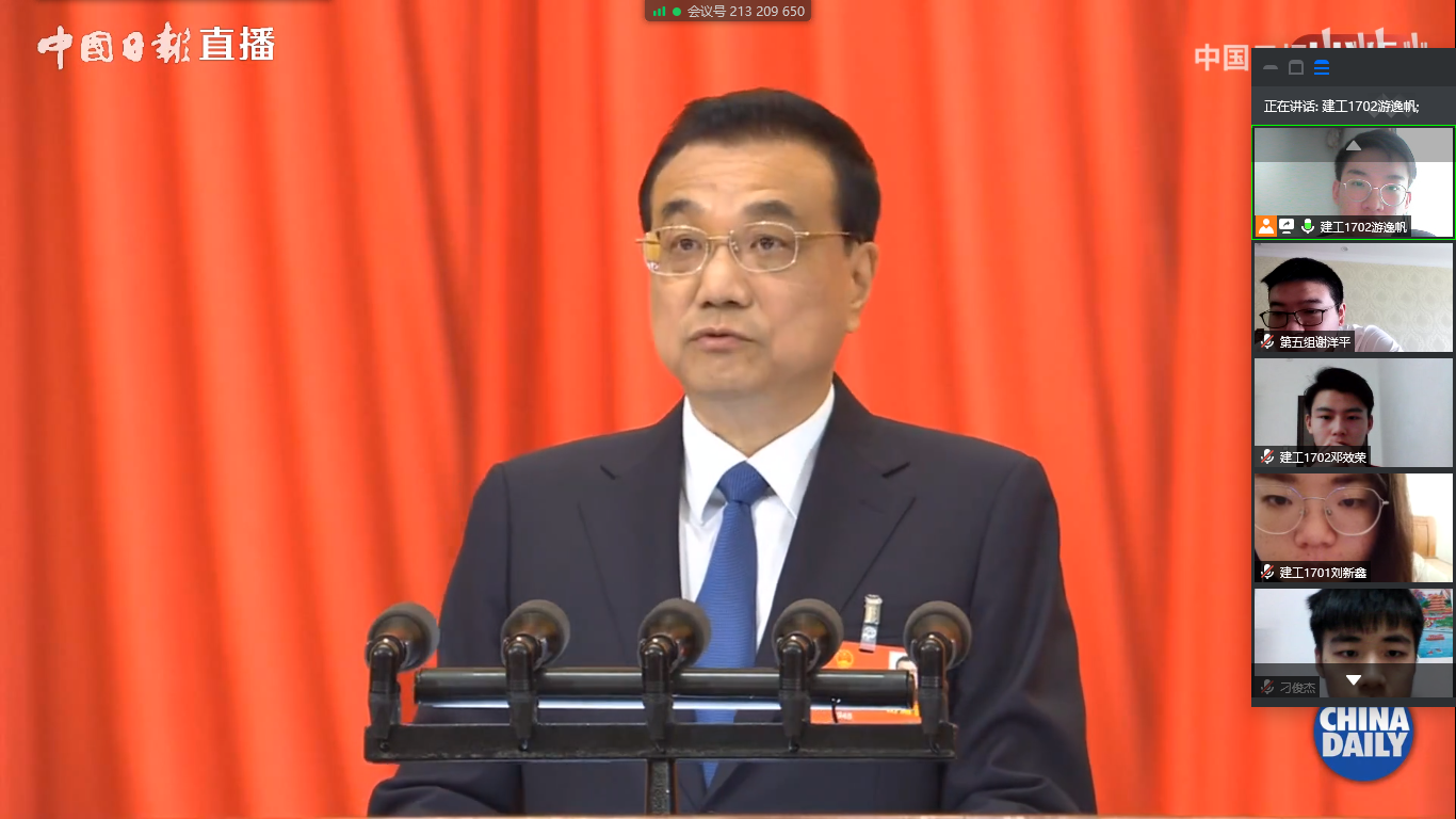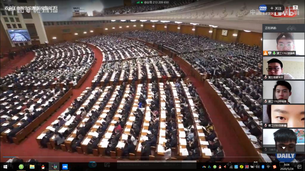 随后,同学们纷纷畅谈了学习“两会”精神的收获和感想,建工1601班班长肖杨同学有感而发:“在这个特殊背景、特殊节点下,全国‘两会’拉开了大幕,全国各地的代表委员带着职责使命共赴盛会,从会议直播视频中,我能感受他们激发的‘越是艰险越向前’的精神,他们‘不破楼兰终不还’的意志,更是能体会到中华儿女决战决胜的强大力量,会议中更是传达了‘生命至上’的理念,把人民的生命放在首位,敢于取舍,才能把疫情迅速地控制住。”桥梁支部学生党员宋俊认为:用“两会”最新的理论武装我们青年人尤其是思想觉悟比较高的大学生党员,指导党员的行为,对我们的影响是深远且有持久的”,各支部学习现场的气氛十分活跃。