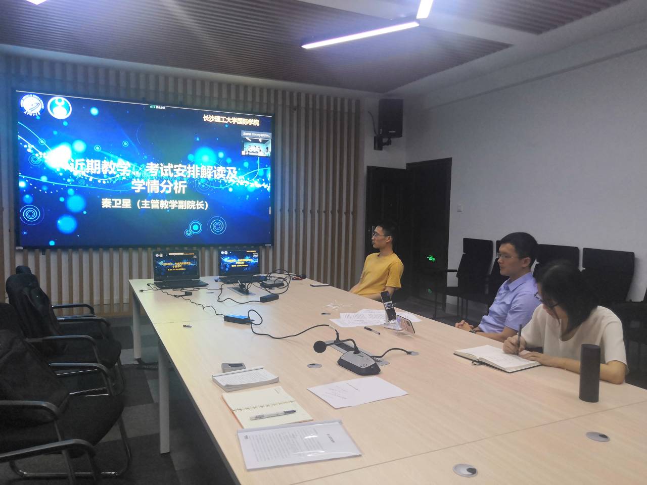 随后,秦卫星就近期教学、考试安排进行了详细解读,并对2019级学生入学以来的学习情况做了具体分析。