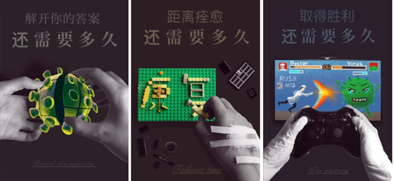 设计理念:疫情不可预测,但我们要乐观!因为我们都知道,一定会胜利!此套作品从一个乐观的角度,表现了研究者、病人和医生的抗疫“战争”。每个人肩负自己的社会责任,与病毒抗争,为社会分忧。第一张为专业研究学者的手,解开这个病毒魔方的秘密还需要多久?指日可待!第二张为病人的的手,堆砌好康复的积木还需要多久?指日可待!第三张为医生的手,战胜病毒还需要多久?指日可待!乐观不是盲目自信,而是我明知道这是座高山,也要不惧万难。因为,我门要站在山顶笑。