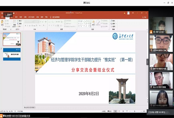 8月2日晚,经管学院学生干部能力提升“惟实班”(第一期)圆满结束。学院18级近200名学生干部参加本次培训,18级辅导员何涛、叶鑫以及全体培训学员参加结业仪式。本次结业仪式由18级分会干部李文主持。