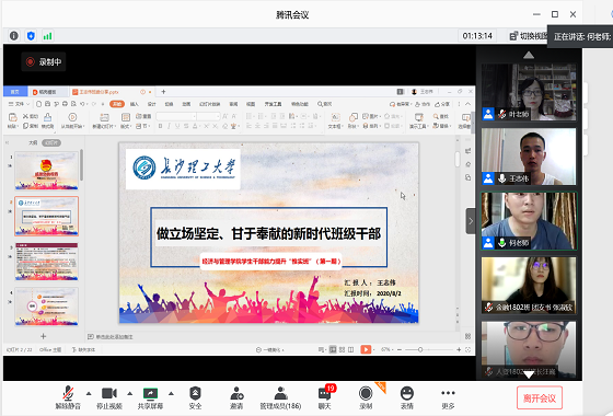 本次“惟实班”为期3天,开展3个单元的教学。苏杭以《班委工作技巧与实操能力》为题,围绕行动前的“两问”、先成为优秀的人、工作技能与技巧三方面展开,从实践方面告诉大家要懂得如何寻求高效的工作方法,充分利用发散思维,对学生干部能力的提高提供了方向。