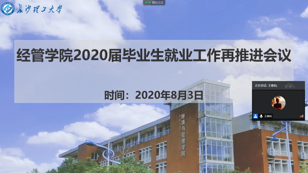 为进一步提升经管学院毕业生就业工作质量与成效,8月3日晚8:00,经管学院在线上组织召开2020届毕业生就业工作再推进会议。院党委书记王宏主持,全体院领导、研究生导师、系主任、支部书记、毕业生班主任、毕业生辅导员参加会议。