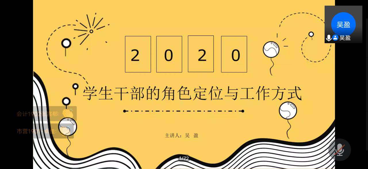 吴盈以《学生干部的角色定位与工作方式》为题,提出作为学生干部要有充分的自我角色定位。