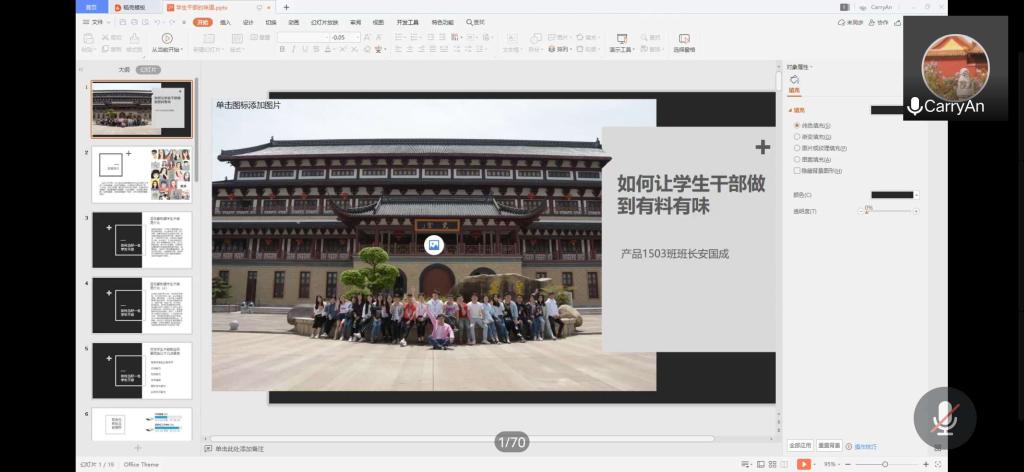 段懿珊在总结中提到,希望大家多交流,多锻炼,肯担当,做“真人”、“真事”,真正做到学有所获,学以致用,希望学生干部去发光发热,竭力做好本职工作。