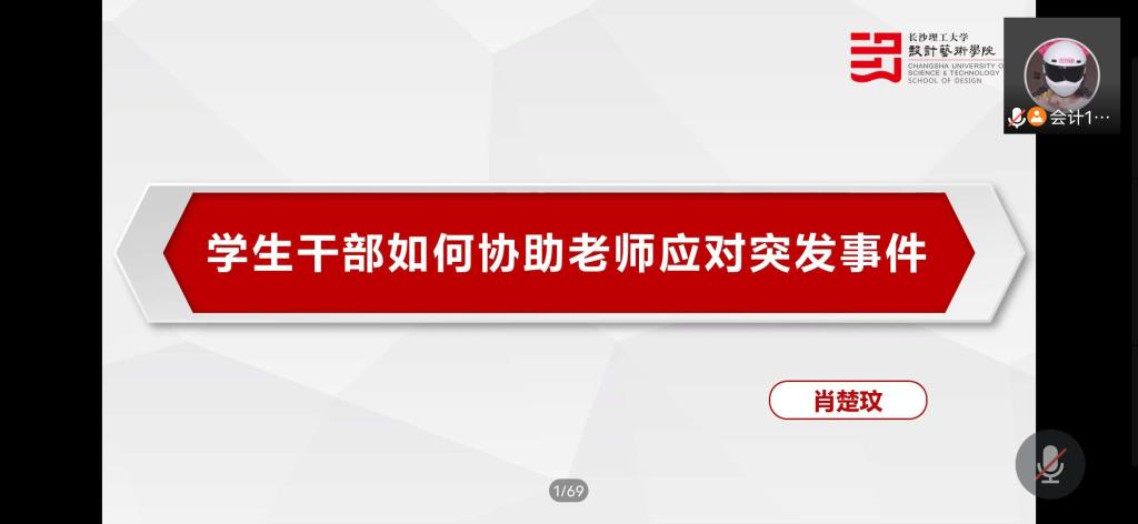 肖楚玟以《学生干部们如何协助老师面对突发事件》为题,系统的阐释了各种突发事件的情形,论述学生干部处理突发事件的基本程序。