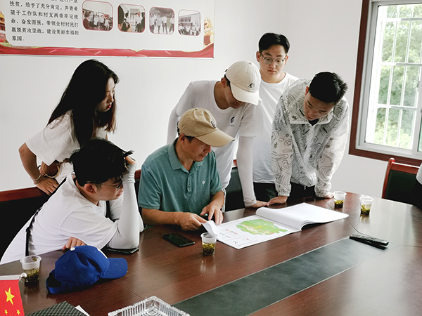 调研任务进行到第二天,第一小组抵达云上大院后,就其现有的各特色农旅、文旅点及民宿的设计模式进行考察学习。随后,调研团队充分结合当前的调研成果与大院农场政府经营部门共同召开了炎陵县“设计下乡”座谈会,对农场现有问题提出了建设性的意见及规划方向。与此同时,第二组考察龙潭龙渣两村的自然生态资源以及乡村建设存在的问题。小组成员不仅对龙潭村沙石场、龙泉瀑布,龙渣村水电站、古桥进行实地考察,而且还与村委会讨论了黄桃小镇的设计意愿。晚餐后小组成员抓紧时间详细讨论了当天调研的意见与看法,集中形成了统一的设计方案。