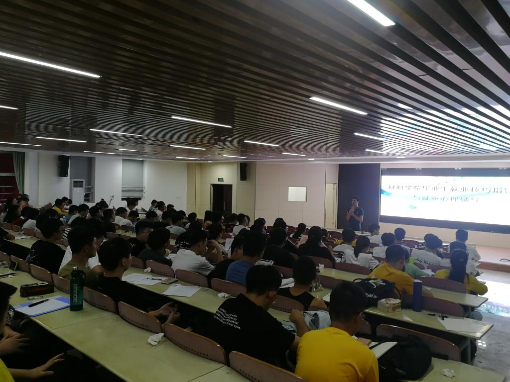 谢易真作就业技巧指导与就业心理辅导,从就业形势、简历制作、面试技巧等方面对毕业生就业进行指导,希望广大同学抓住9月、10月的就业黄金期,尽早确定工作。