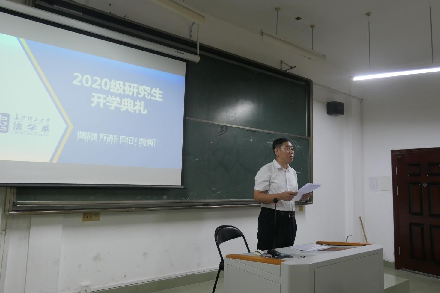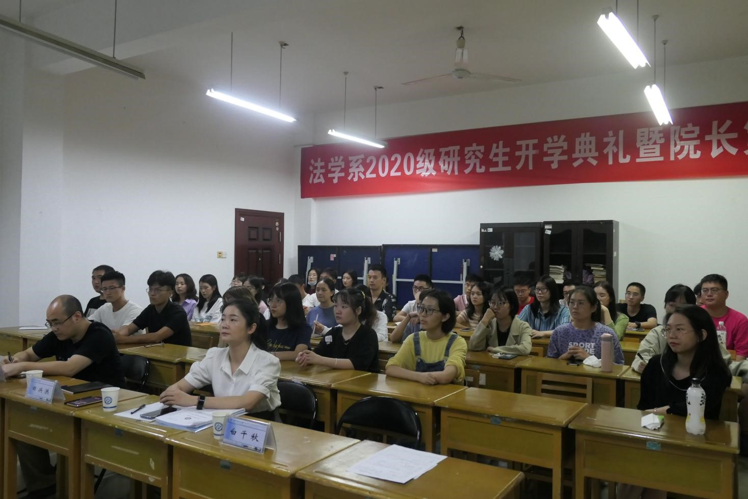 9月16日晚,法学系在金盆岭校区七号教学楼319举行2020级研究生开学典礼暨院长第一课。法学系副主任(主持工作)张敏纯,党总支书记田兴洪、2020级研究生班主任申纯博士以及法学系2020级全体研究生参加。活动由研究生辅导员白千秋主持。