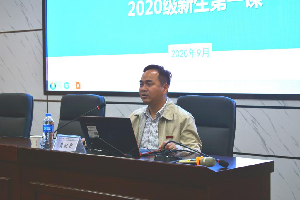活动最后,黄创霞为同学们开展新生第一课。他先向同学们详细介绍了学院的创建历史、人才培养、教学资源、学科建设及科研成果等情况,指出创新是发展的第一动力,新生们应树立理想、成就自我,成为时代的引领者和接班人。他强调,同学们不能辜负时代赋予的美好生活,勇于担当使命,无愧于自身,不负青春,学有所成。