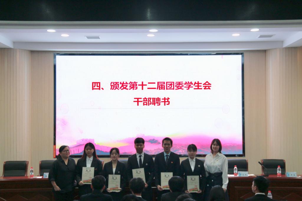 第十二届学生会主席张福瑜作工作总结汇报,回顾了过去一年的团学工作取得的优秀成绩,代表全体学生会干部向下一届提出了在学习工作上坚持创新等建议和美好的期望,希望大家秉承“不忘初心、牢记使命”的信念。黄阿明和綦丽给第十二届团委学生会干部颁发聘书。第十三届团委学生会主席团作述职报告,介绍了各自的职责和管理部门,表明了今后的工作目标和做好学生工作的决心,各部门部长也介绍了各自部门职责和工作计划。