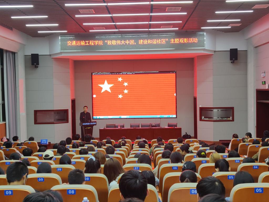 为庆祝新中国成立71周年,进一步激发学生的爱国热情,引导学生继承和弘扬爱国主义光荣传统,加强精神文明建设,营造健康向上、朝气蓬勃、团结奋进的社区良好氛围,9月27日晚,交通学院自管会组织社区学生于工科二号楼交通科技报告厅开展“致敬伟大中国,建设和谐社区”主题观影活动,学院党委副书记王煜坤、学工办老师曹骁同场观看。