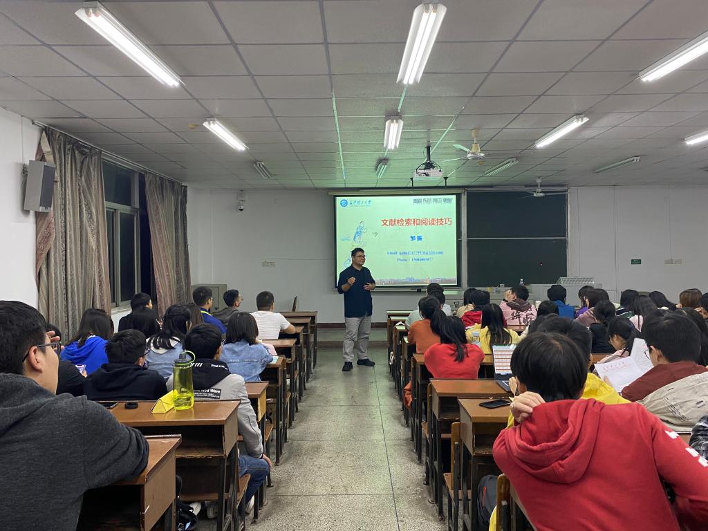10月21日晚,化学与食品工程学院于金盆岭校区四教309举办第一期“导师讲堂”,院研究生会特邀邹振开展主题为“文献检索和阅读技巧”的讲座。院研究生会学术部部长戴诗勤主持,2020级全体研究生参加。
