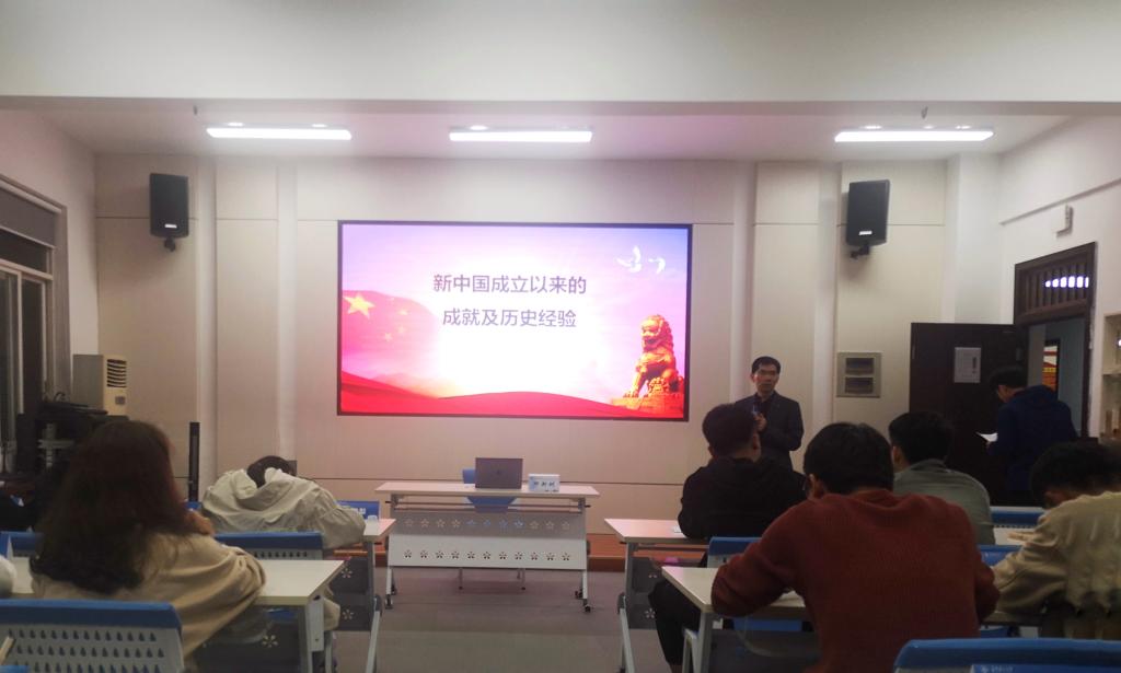 11月13日晚,土木学院分党校组织第22期预备党员在工科二号楼开展《新中国成立以来的成就及历史经验》专题党课,马克思主义学院马克思主义中国化系主任邹新树应邀主讲,党校部谭桧及第22期预备党员全体学员参加。