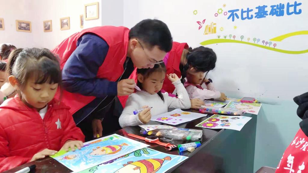 志愿者通过艺术熏陶学习生态保护理念,与小朋友近距离接触,拉近与小朋友们之间的距离,邀请小朋友们一同拿起纸笔,画出心中“我的动物朋友”。一幅幅稚嫩、灵动的画在孩子们手中诞生,激发了孩子们对绘画的热情,使孩子们心中的河流保护意识悄悄发芽。