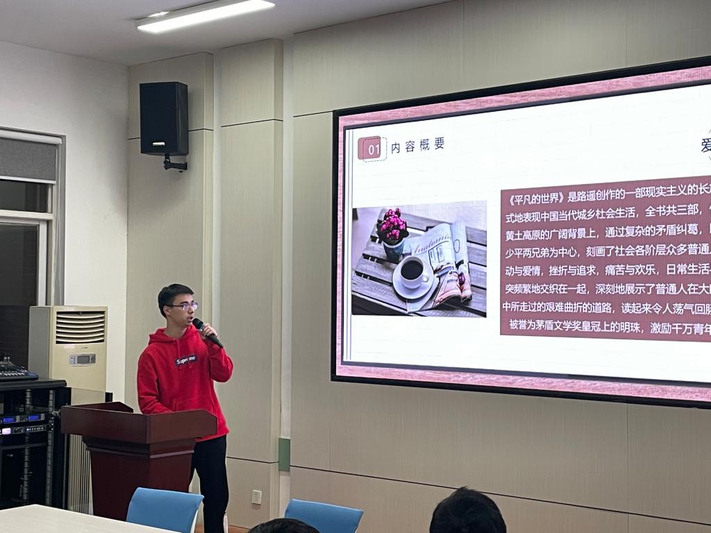在阅读分享环节中,7位朗读者分享阅读体会。庞瑞等同学带领大家品读了《平凡的世界》中的不平凡,展现了那个时代人们的善和美及面对苦难坚忍不拔的抗争精神;刘沛奇同学带领与会人员用全球史观刨析《全球通史》中的历史问题,告诫同学们要警惕西方学者对中国历史的解构和消解;李荣峰同学带大家感受了《围城》中人物在思想上的软弱和缺陷;徐乐康同学解读《追风筝的人》中少年哈桑永恒的忠诚、阿米尔的自我救赎;周翔同学带领同学们重温《共产党宣言》,从中汲取理论的力量,了解共产主义的真正含义,学习共产党人的初心和使命。