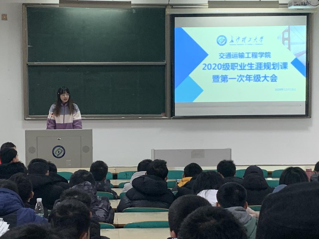 12月15日下午,交通学院在金盆岭校区六教110、312多媒体教室开展2020级职业生涯规划课。此次课程由交通学院党委副书记王煜坤、学工办刘莎、汪招霞、周静、冯心崚等老师们为2020级全体新生授课。