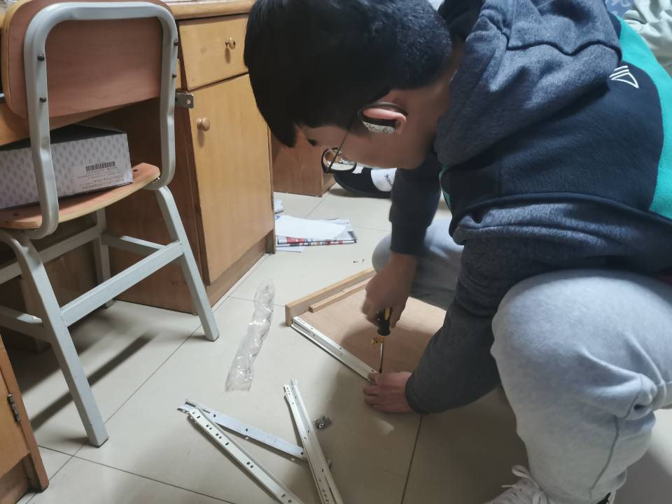 接受义务维修服务的行健轩三栋A103宿舍成员吴宗喆表示,“义务维修队的同学来到宿舍为我们维修损坏物品时,我感到十分的惊喜。他们来回奔波,认真仔细地修理故障抽屉,在工作人员安装好滑轮、滑轨后,抽屉立即可以正常运作使用,我在惊讶维修服务高质量、高效率的同时,也十分庆幸学院有这样一直兢兢业业的义务维修队伍,非常感谢他们为同学们提供的帮助!”