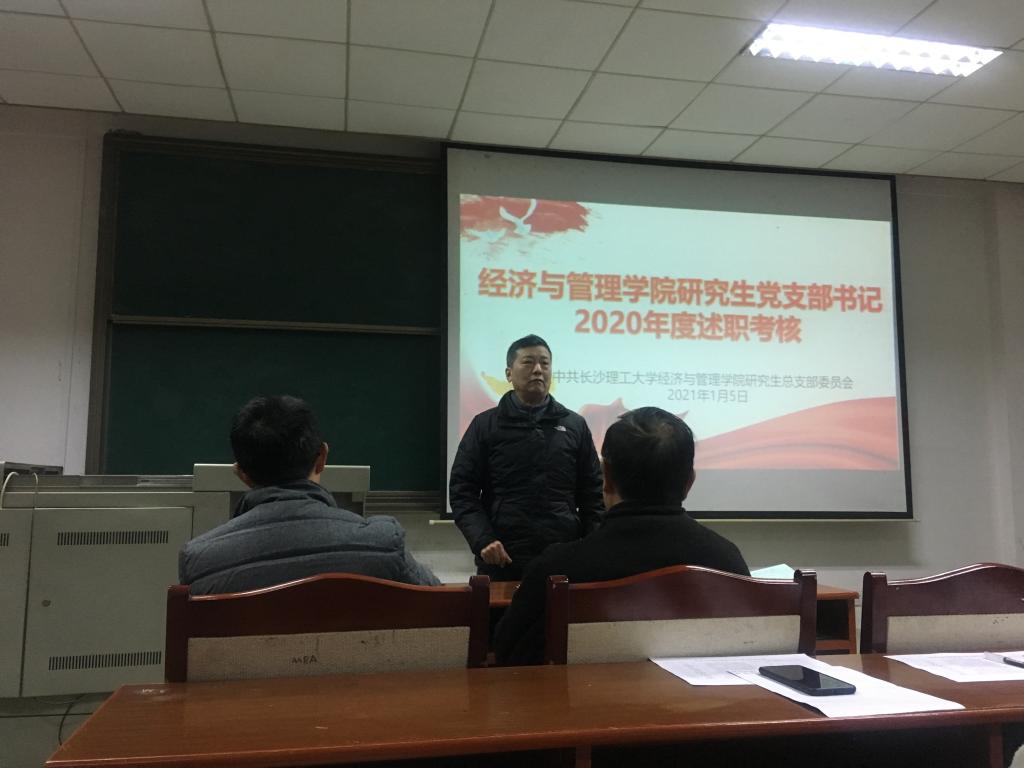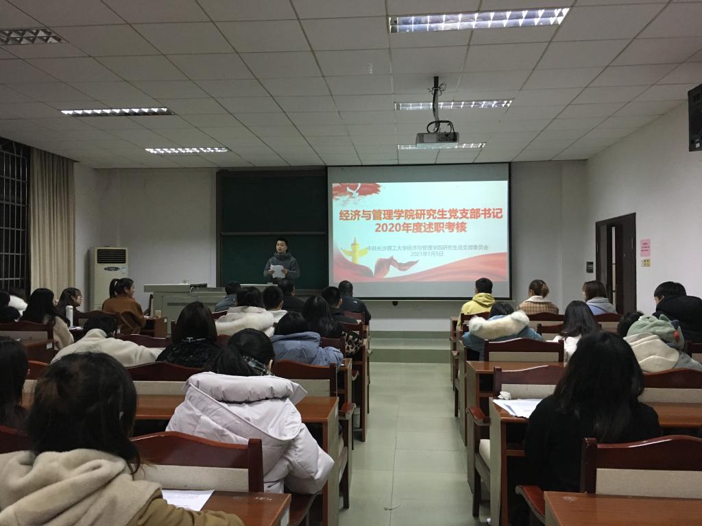 为更好地促进基层党组织书记履职尽责,推动管党治党责任在基层落地落实,1月5日晚7点,经济与管理学院研究生党总支于金盆岭校区7教110召开了党支部书记述职考核会议。院党委副书记唐青,专职组织员丁力,关工委特邀组织员陈均杰、李争流,学生党总支副书记、研究生辅导员周路路,党建辅导员叶鑫和全体党支部书记参加了本次会议,会议由研究生党总支委员陈实主持。