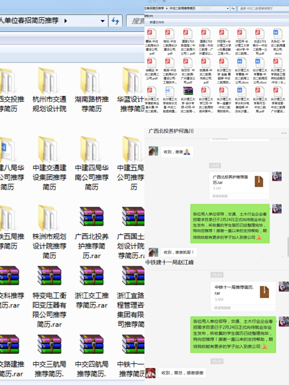 此次发布的春招需求目录,共包含企业(含二级分子公司)68家,涉及岗位超过1800个。其中需求目录企业多以中国交建、中国铁建、广西北投、广西交投、湖南路桥、浙江交工等大型央企、国企为主,也包含了苏交科集团等上市科研、设计企业。岗位需求不仅量大,且种类齐全,既有项目管理等工程技术类岗位,亦有工程造价、人力资源等商务财经和综合管理类岗位。同时,此次的需求目录中附上了企业HR的联系方式、邮箱等信息,学生既可以选择自行投递简历,也可以将简历发往学院,再由学院向意向单位逐一推荐。总体而言,需求目录中企业、岗位可选择面广,毕业生意向度高。据统计,需求目录表发布至今,共向企业推荐简历205人次,超30人达成签约意向。