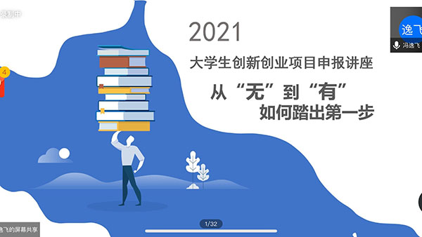 2月19日晚,设计艺术学院于腾讯会议成功开展第十七届“挑战杯”线上分享会议。此次会议由设计艺术学院2020级研究生朱杰、产品设计1702班唐腾,广西师范大学外国语学院李爽,西安电子科技大学电磁场与无线技术学院冯逸飞主讲。本次分享会共吸引了设计艺术学院、土木工程学院、水利工程学院等院系共132名同学积极参加。