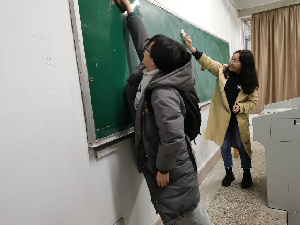 3月5日中午,院青志团组织了19名志愿者在金盆岭校区13号教学楼前集合,对13号教学楼一层楼进行清扫。青志团成员志愿者进行简单分组,确保每个教室至少有3名同学清扫。明确各自的任务后,志愿者们迅速行动。对于清洁空间比较狭小,桌椅下又有很多细小垃圾的地面,志愿者们弯着腰仔细清扫,有的甚至钻到底下去,不放过每一个缝隙。