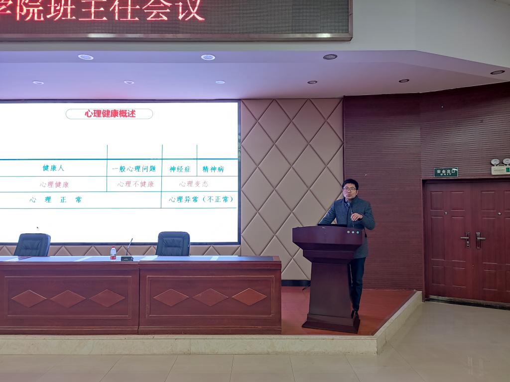 城南学院党委副书记陶传谱作“异常心理与干预处理”专题培训。陶传谱就心理健康的概念、常见的心理问题、及时干预等方面做讲解。他详细介绍心理正常异常的判断原则、引发心理危机的心理压力来源、常见的心理病症、大学生自杀的危险征兆和心理危机干预的步骤等心理健康教育知识。