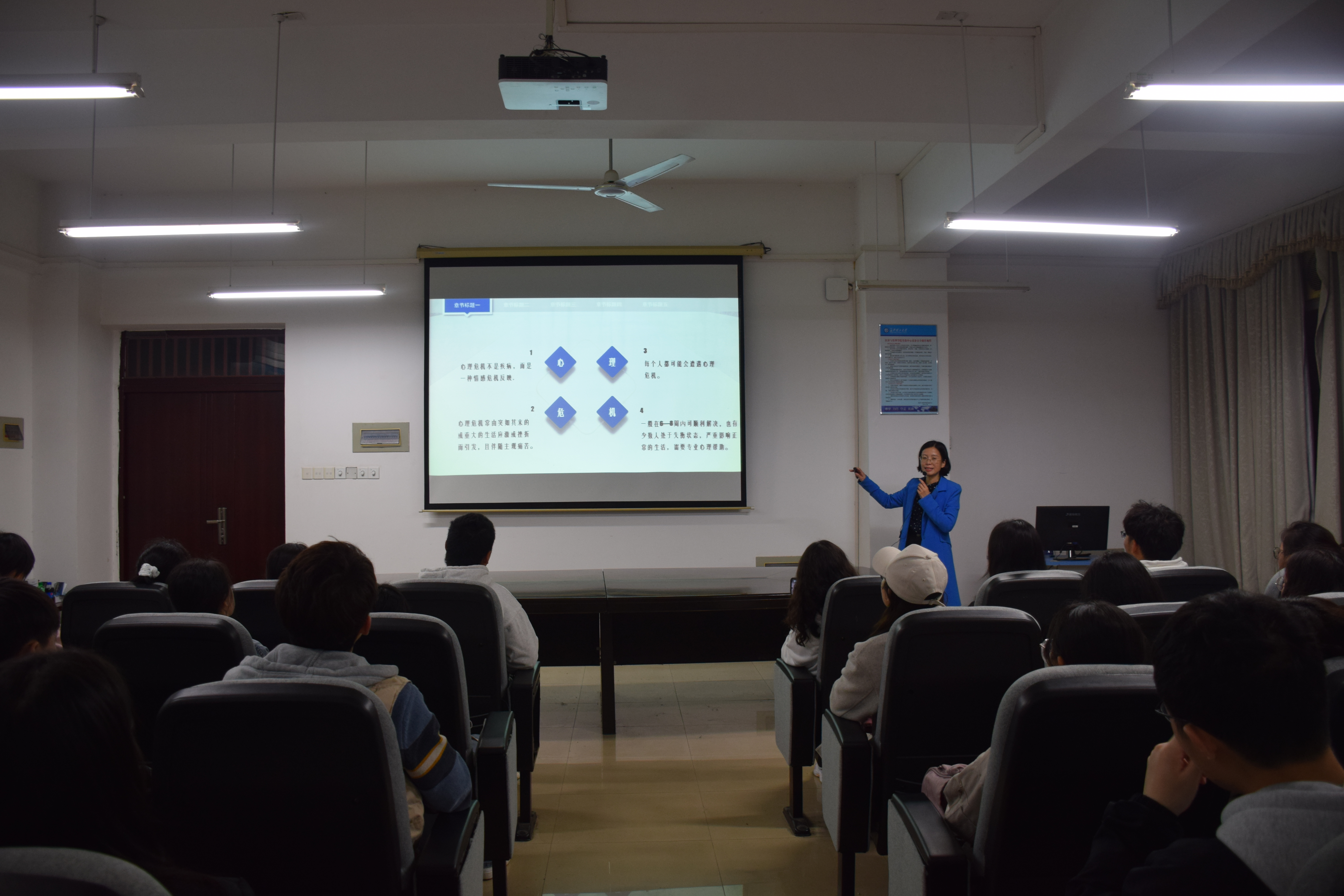 为普及心理健康知识,提升朋辈互助员自助与互助能力,经管学院于3月17日晚,在云塘校区文科楼D305室开展了朋辈心理互助员心理危机通识培训。会议由经管学院心理辅导员李丽兰主讲,大一至大四全体班级心理委员以及朋辈心理部干部参训。