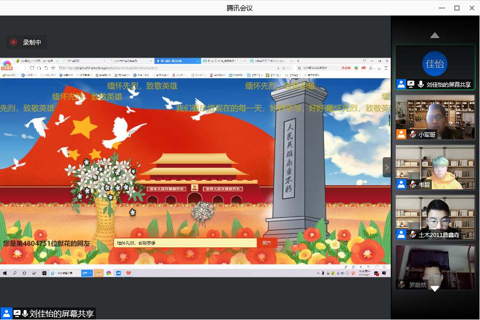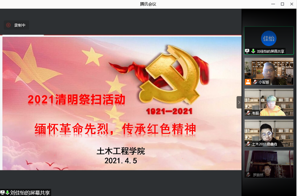 为教育引导学生厚植爱党、爱国、爱社会主义的深厚情感,深化学生“四史”学习教育,在清明节当天,土木学院2020级120余名入党积极分子在辅导员李小军的带领下,共同参加“缅怀革命先烈 传承红色精神”清明节主题线上祭祀活动。