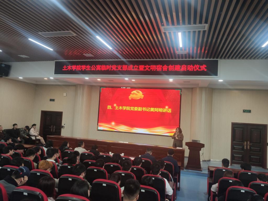 为进一步推进学生养成教育,强化劳动育人、实践育人实效,4月6日下午,土木学院召开学生公寓临时党支部成立暨文明宿舍创建启动仪式,院党委副书记(代理)黄阿明、学工办全体辅导员、全体本科生党员以及班委参加会议。