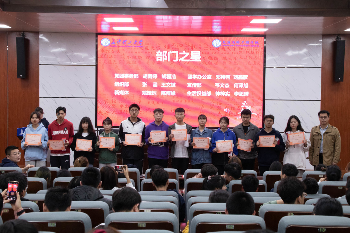 最后,彭笠为“部门之星”颁奖,对工作中表现优异的表示肯定,并鼓励交通青年再接再厉,继续发挥自身优势,争做同学们的榜样。