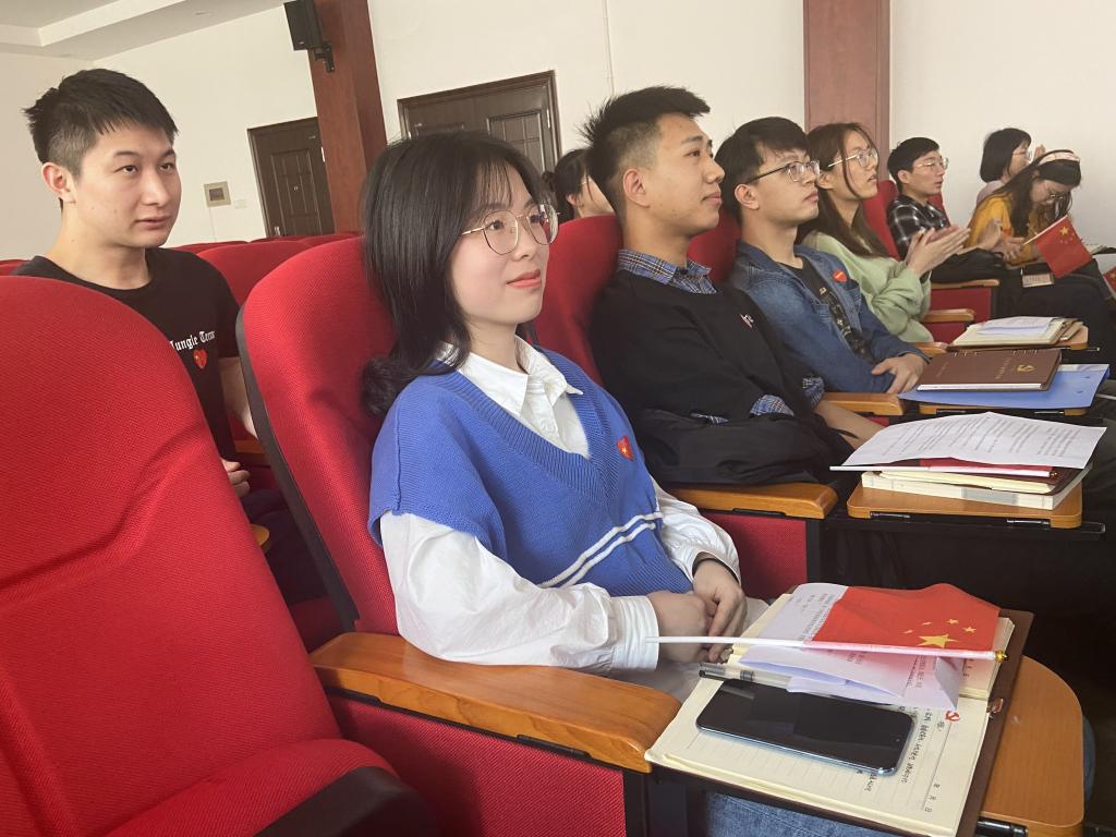 接着,是好书分享环节,大家分享了《习近平的七年知青岁月》《千年一叹》等红色书籍。学生党员吴俞波分享的是杨沫创作的长篇小说《青春之歌》,讲述了抗日战争中青年成长的故事,揭示出知识分子成长道路的历史必然。学生党员们在一本本红色书籍分享交流中感受历史的浩荡,感怀精神伟力,感悟思想精髓,不断深化爱国情怀,坚定马克思主义信仰。