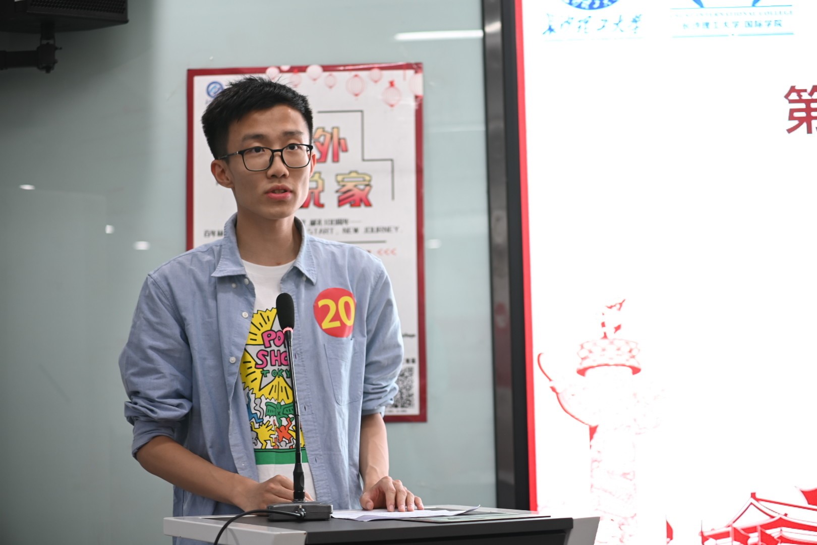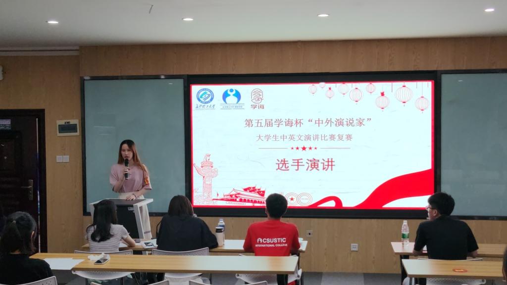 在中国共产党成立100周年之际,为弘扬中华民族先进文化,激发广大学生爱国热情,丰富学生的课余文化生活,推动文明和谐校园建设,5月14日晚,能动学院在新能源一号楼举办了学诲杯"中外演说家"大学生中英文演讲比赛复赛。学院英语嵌入式教学合作方学诲教育曾耘、张卓、何千帆、陈阳阳担任本次比赛评委。本届“中外演说家”演讲比赛,共有来自15个学院的106名学生报名,经过初试,有78人名学生晋级复赛。