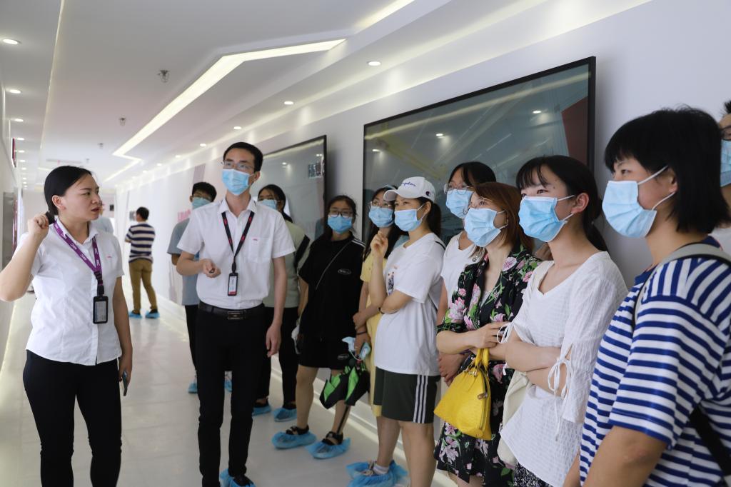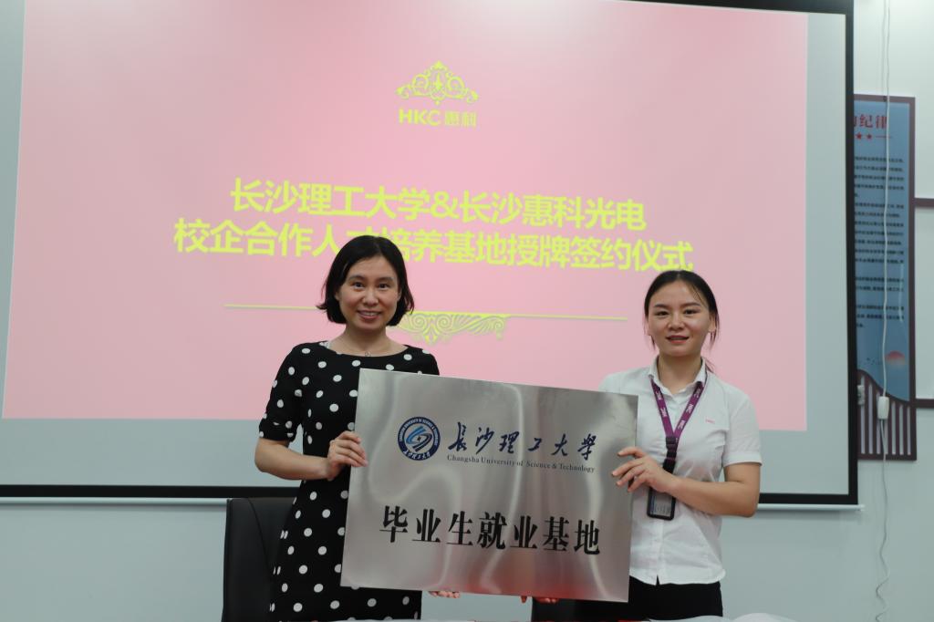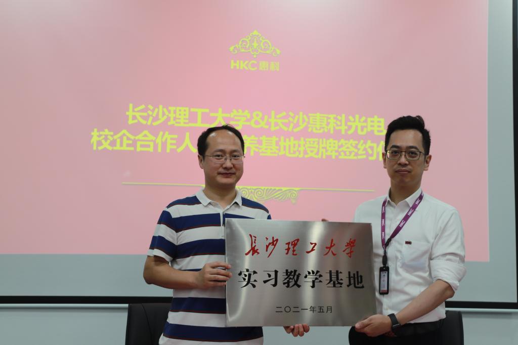 到达企业后,学院师生参观了长沙惠科数字化展厅及厂区内展示通道,详细了解了惠科的发展历程及其在推动整机、面板、智能显示终端等领域的创新方向及领先成果。讲解员还带领同学们参观了公司的员工宿舍、公司内部商业街、健身房等基础公共建设。随后,学院师生与长沙惠科公司于会议室进行交流,周林玲详细介绍了长沙惠科企业发展历程、业务范畴与产品技术特色。杨现锋介绍了学院的专业设置、师资队伍、人才培养的基本情况,同时也希望拓展合作形式,通过更深入的交流丰富合作内涵,扩大合作成效。陈华表示希望通过校企合作的形式,为学生的就业提供更多的选择,拓宽学生的视野,实现高校与企业双赢的目的。最后,校企双方代表进行“yl7703永利官网实习教学基地”和“yl7703永利官网毕业生就业基地”签约授牌仪式,并就联合培养等合作事宜进行了深入沟通。