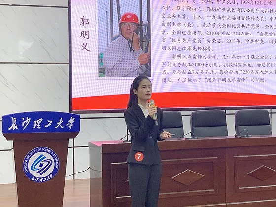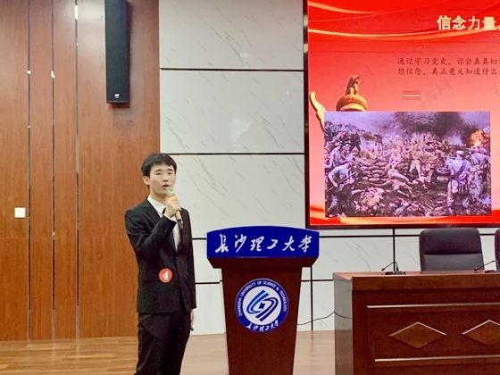 水利计通系选手思路清晰,分别从三个部分阐述主题“明四史、惜天下、筑明天”,并告诉大家:美好生活来之不易,我们要不忘初心,传承时代赋予的使命。
