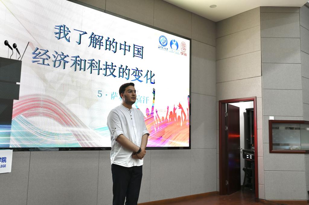 中文赛道中,6名留学生选手用汉语分享与中国的美丽邂逅,从政治、经济、文化、社会、生态文明等多个视角,讲述他们通过老电影、网络媒体所认识的旧中国与现在拥有高铁、移动支付的新中国,将自己在华留学期间,中国发生的改变及取得的历史性成就娓娓道来。他们用真挚的感情描绘他们眼中的中国,用生动活泼的演讲风格赢得了现场观众阵阵掌声。“我在电视里看到的100年前的中国是贫穷落后的,百年后的今天,中国已经从低谷走向富强。因为中国交通的发展举世瞩目,来自不同国家的学生,慕名前来学习中国的技术。”来自肯尼亚的留学生李元舟用流利的汉语分享了自己来华留学2年以来的故事。“我希望还有更多的外国人来领略神秘的东方大国风采,他们一定会爱上中国”来自老挝的留学生王思晨发自内心地感慨道。在情景表演环节,留学生们演绎了中国古典故事、歌曲,展示有中国特色、体现中国精神、蕴藏中国智慧的优秀文化。