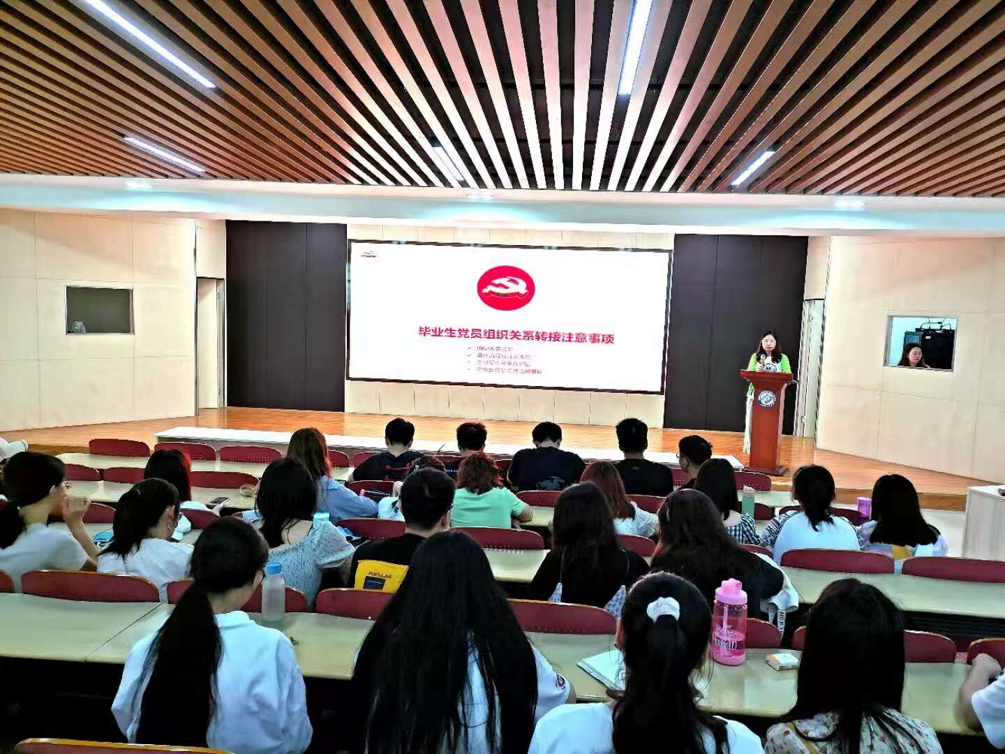 首先,刘文成对毕业生提了三点希望与要求:一是要严于律己,主动担当,带头做好文明离校等工作。二是要持之以恒,站好最后一班岗。保持党员的先进性和纯洁性,在党史学习教育、文明养成教育、安全稳定等方面发挥示范引领作用。三要牢记党员身份,加强党性修养。时刻谨记和践行“学史崇德”专题要求,始终用崇高的理想当指引,用高尚的追求做支撑,把为党和人民事业无私奉献作为人生的最高追求。接着,刘文成就毕业生党员组织关系和党员党籍管理档案转移规范和要求进行了详细的讲解。主要包括党员组织关系和党员档案转移,组织关系转接的类型,组织关系转接注意事项,介绍信开具与管理等四个方面。