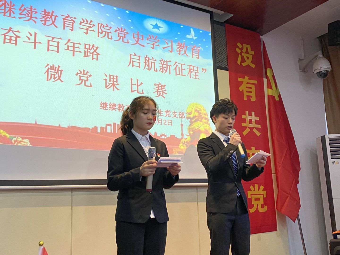 6月2日晚,继教学院学生党总支举办“奋斗百年路 启航新征程”主题微党课比赛。学院党总支副书记兼副院长方碧波,学生党支部书记、学工部主任刘卓明,学工部全体教师、各校企合作部负责人和学生代表参加活动。
