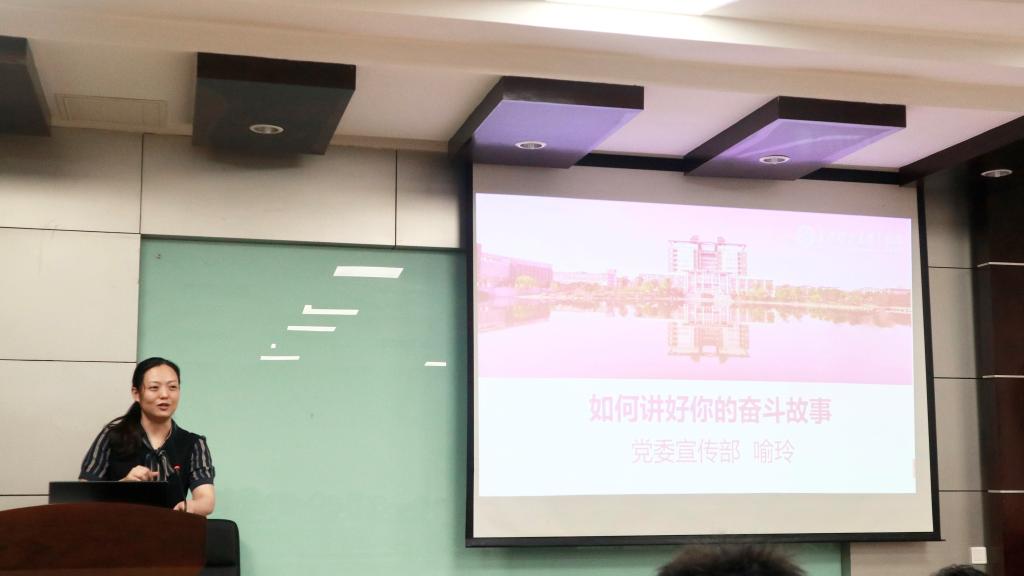 随后,喻玲以“如何讲好我的奋斗故事”为题,从新闻的五个基本要素、新闻的三个特点及新闻的组成等三个方面为同学们生动诠释了什么是新闻。她以许多新闻案例为同学们介绍了背景的重要性,指出新闻的写作特点,并对同学们如何写好新闻稿提出了建议。最后她还特别强调要在活动前做好写稿的准备工作。