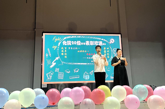 6月18日晚,化学学院在创新创业园科技报告厅举行2020级表彰欢送会。化学学院党委副书记陶双、学工部民族教育科老师杨丹、化学学院2020级辅导员熊英、2020级班主任以及化学学院2020级全体学子参与了此次晚会,刘秦倩琦、王小天主持晚会。