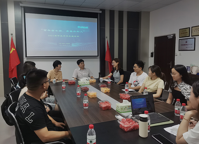 6月21日下午,水利工程学院在工科三号楼B446召开“百年奋斗路,青春水利人”2021届毕业研究生代表座谈会。学院副院长李毅、党委副书记银波、科研办刘范红、科研办麦雨婷、研究生辅导员綦丽、毕业生代表参加此次会议,座谈会由綦丽主持。