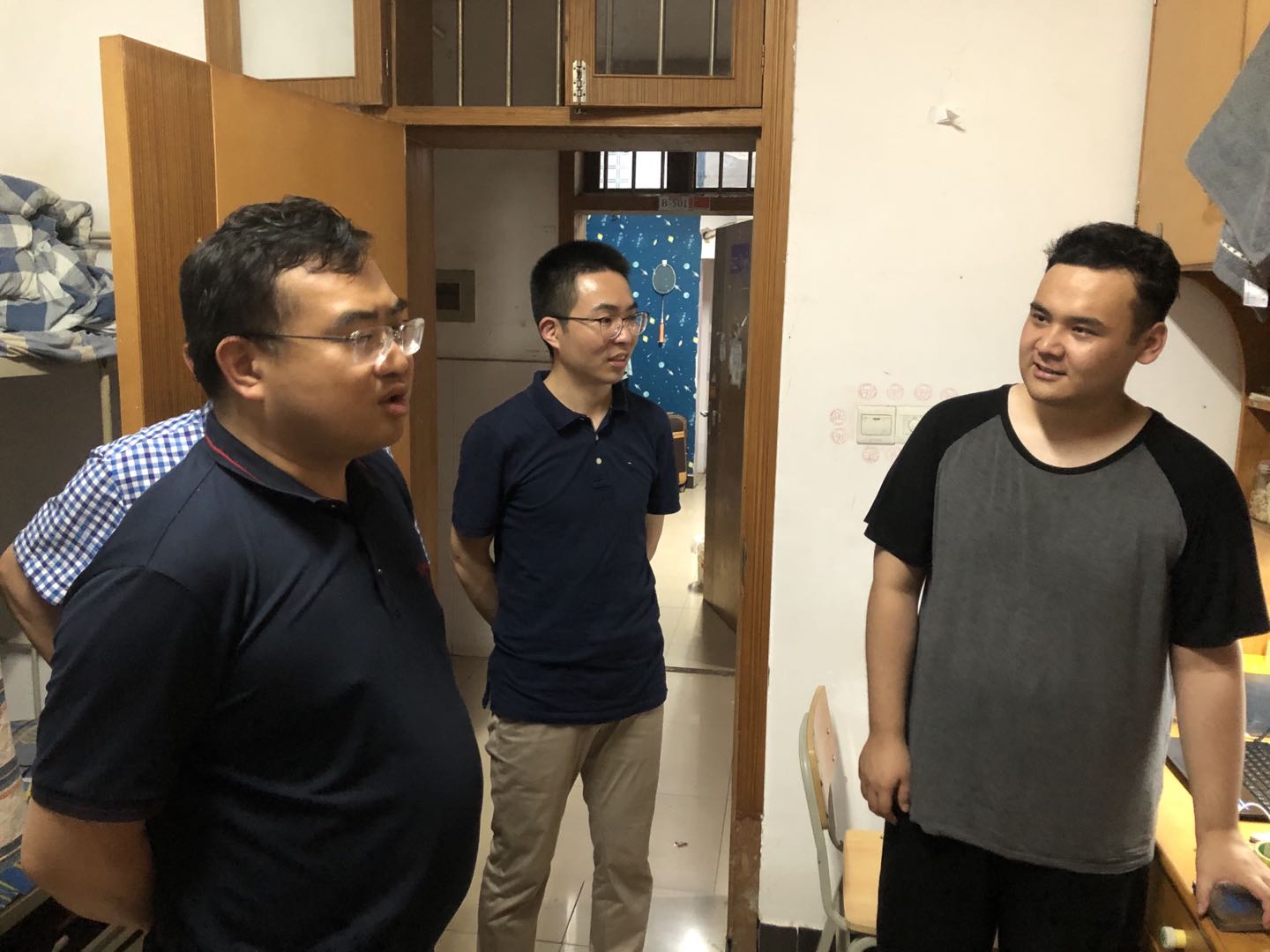6月22日傍晚,能动学院党委书记成华携老师们下寝看望2021届本科、研究生毕业生,为即将离开母校的能动学子们送去关怀与祝福。能动学院党委副书记、副院长张晓烽,副院长何建军、李传常,党委组织员王汉华,毕业年级辅导员罗亦欧、胡琳琳一同参加。