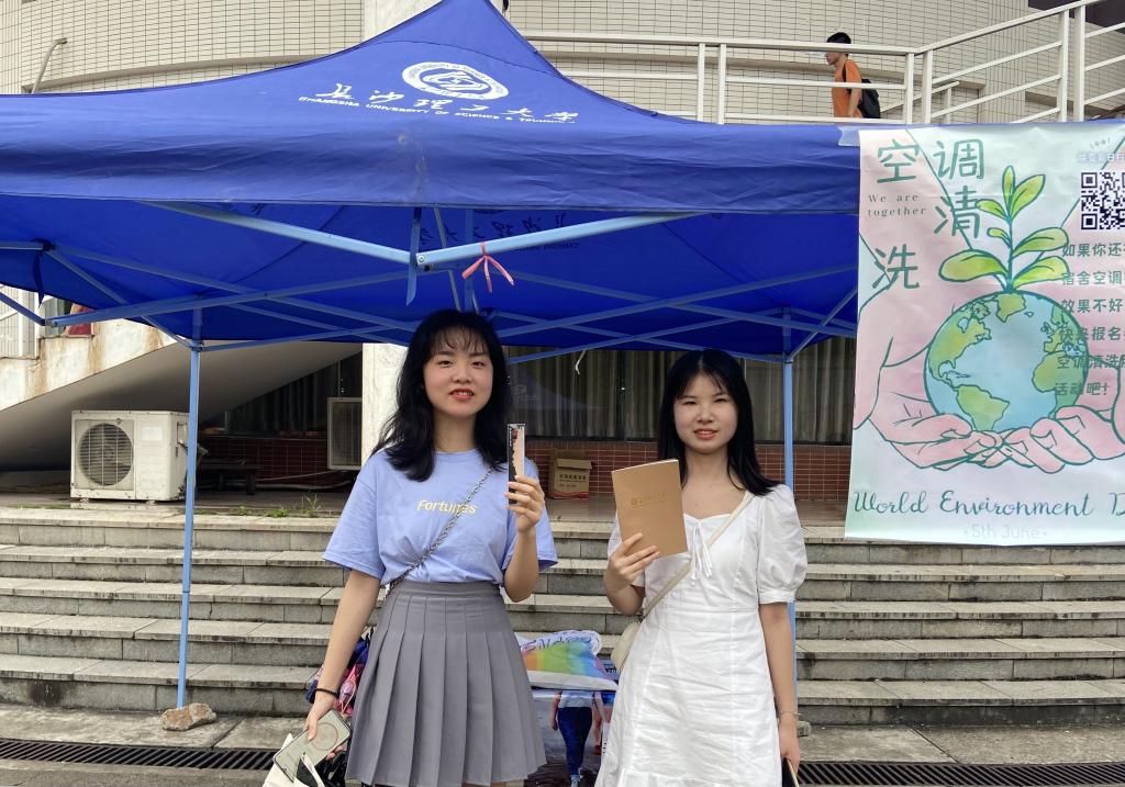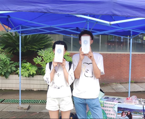 此次活动不仅通过线下摆点,同时结合了微测试、平台预约等线上方式。测试的内容包含了环境保护和空调清洗两方面。每一位拿到奖励后合影的同学脸上的笑容,都是对本次宣传推广活动的肯定。值班的邹宇翔同学说到:“其实大家环境保护意识和参与志愿服务的热情都很高,答题是科普,也是温馨提示”。
