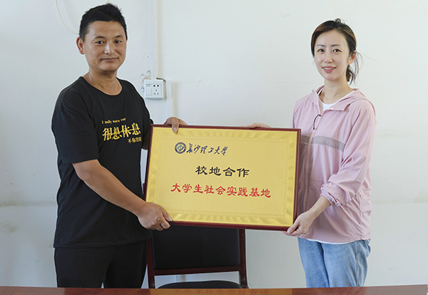 7月13日下午,设计艺术学院党委副书记万馨、院团委书记李慧、2020级辅导员程静征、带队教师田帅以及学院赴邵阳市新宁县暑期“三下乡”社会实践团抵达了邵阳市新宁县马头桥镇坪山村开展实践活动,并举行了校地合作授牌仪式。