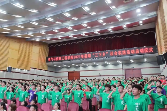 7月14日晚,电气学院于云塘校区图书馆报告厅举行2021暑期“三下乡”社会实践启动仪式。电气学院党委书记符慧林、经管学院党委书记丁丹、校科研部副部长王媛媛、经管学院学院党委副书记唐青以及各实践队带队老师,以及258名实践队员参加,仪式由电气学院党委副书记任艮丰主持。
