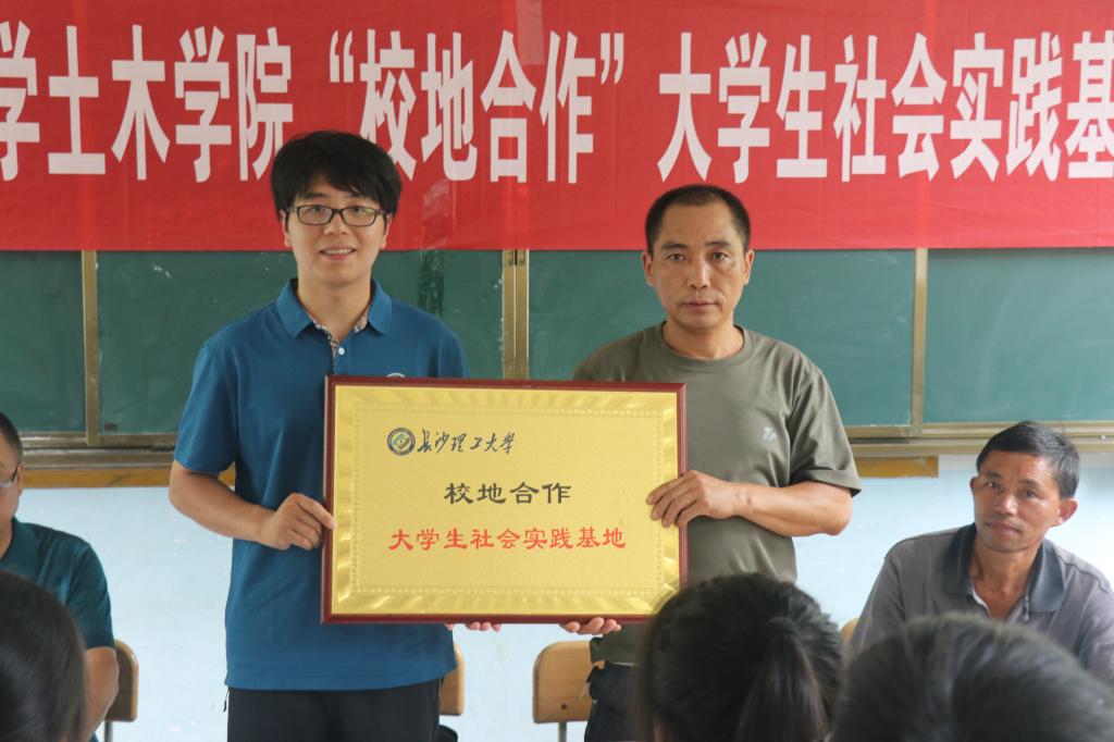 土木学院团委书记董治佑与符德全分别代表各自单位签署校地合作大学生社会实践基地协议。村支书符志华、村主任符安健围绕村里孩子基本情况、住宿条件作表态发言。