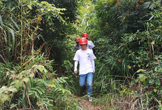 青黑线的大多数杆塔分布在远离城区的深山和田垄上。开车的司机把李师傅和实践队员们送到一号杆塔便离开了,九公里的山路只能靠队员们的脚步去丈量。在巡线的路上李师傅耐心的向队员们讲解如何区分线夹的相序以及检测到异常情况时的处理方法。在前往二号杆塔的路上需要翻过一个四五米高的近乎垂直的土崖,再穿过一段长的比人还高的荆棘杂草丛。李师傅对实践队员们说:“像这样的线路我们每个人都要负责四五条,有时候一天巡不完,我们就走到哪里住到哪里,这些没有路的地方我们多走两遍就成了路。”平常的一句闲谈却深深地震撼着实践队员的内心。
