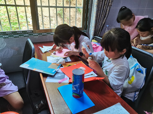 7月28日,为培养学生动手能力,激发创新思维,能动学院“红烛润心筑梦团队”在永丰村支教点开展创意美工兴趣小班课。