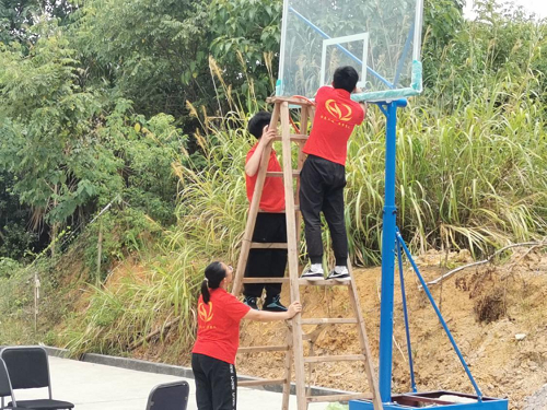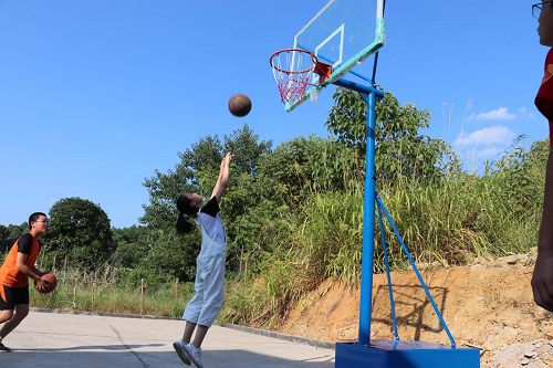 7月29日,永丰村支部前坪的空地上立起一批篮球架。该篮球架为能源与动力工程学院赠与,用于“红烛润心筑梦团队”永丰支教点篮球兴趣小班课的开展以及丰富永丰村孩子们的课余体育生活。